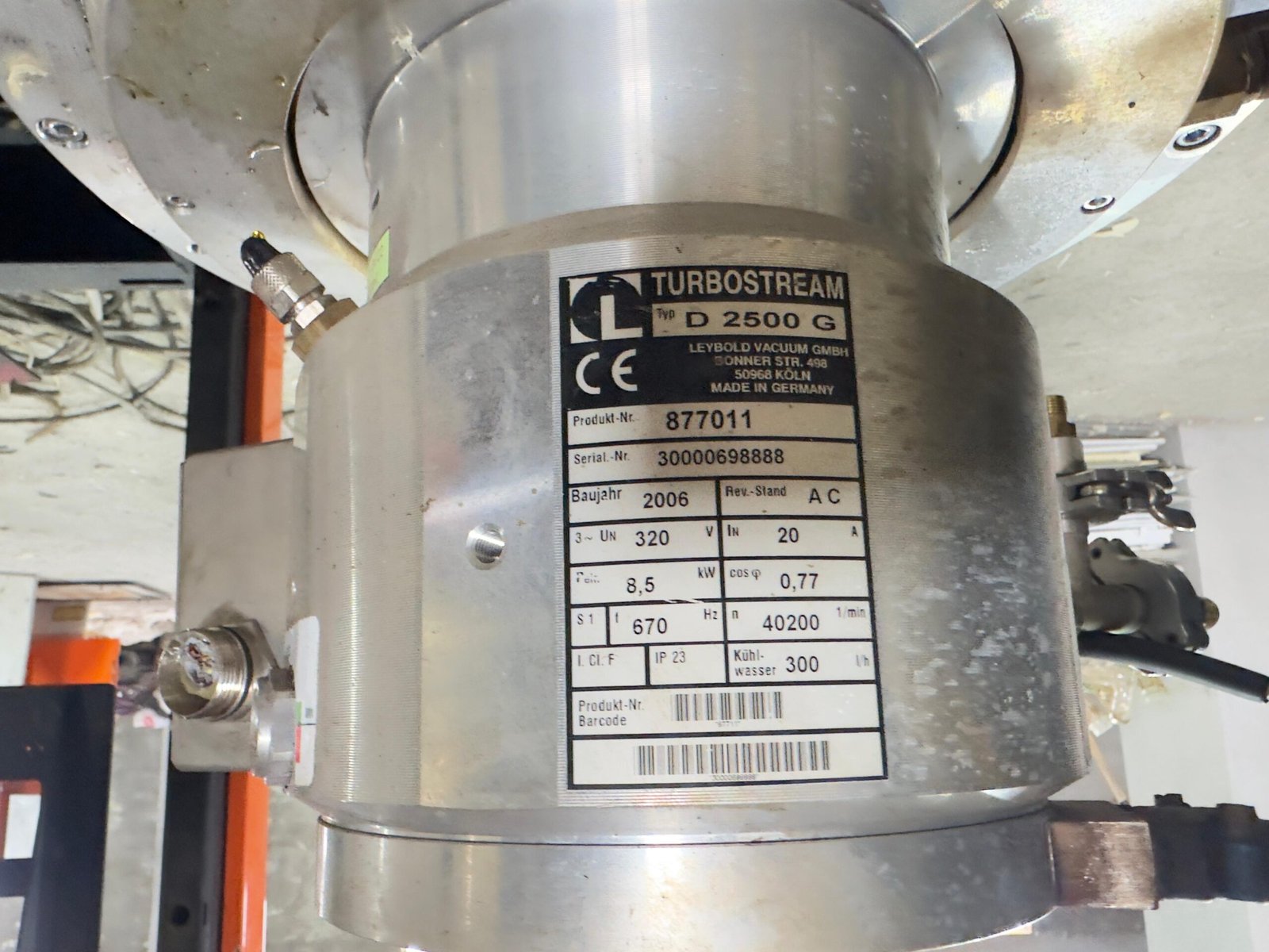 • Soğutma: Su soğutmalı (Water Cooled). Etikette 300 l/h su akışı gerektiği belirtilmiş.